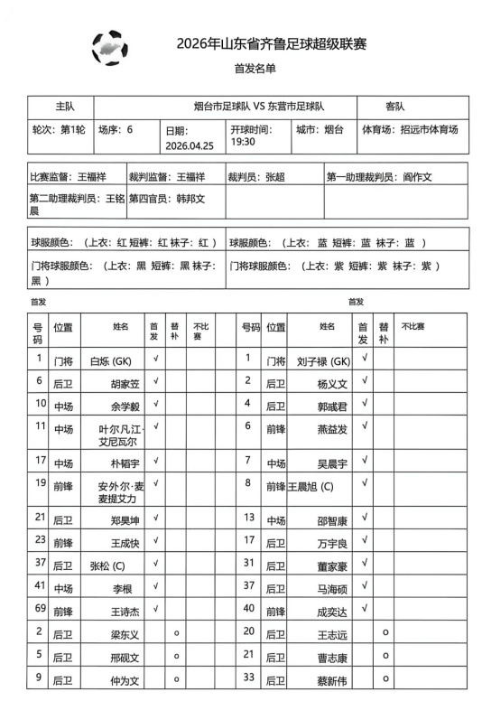 山东省齐鲁足球超级联赛烟台队主场首战